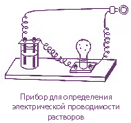 Он состоит из угольных стержней (электродов), присоединенных проводами к электрической сети. В цепь включена электрическая лампочка, которая показывает присутствие или отсутствие тока в цепи. Если опустить электроды в раствор сахара ,то лампочка не загорается. Но она ярко загорится, если их опустить в раствор хлорида натрия.