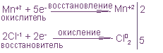 2KMn+7O4 + 16HCl- = 2KCl- + 2Mn+2Cl-2 + 5Cl02↑ + 8H2O